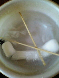 結果・・・・・・・ドライアイスは水につけたら煙がでるぜ!